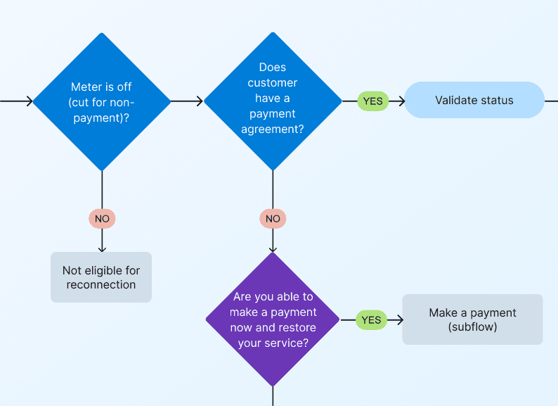 A senior individual contributor case study on a net-new self-service reconnection experience across web and IVR.